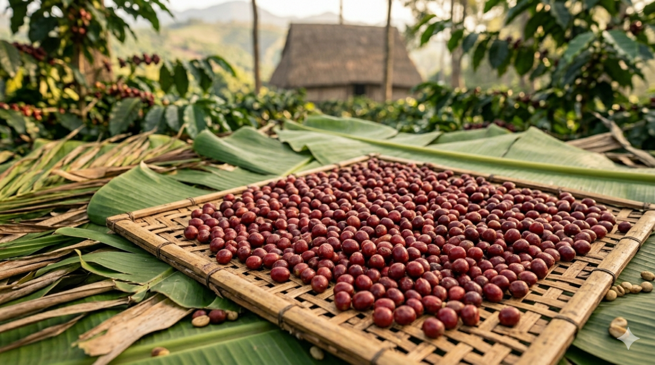 Một trong những điểm đặc trưng là phương pháp phơi nguyên trái (natural). Cà phê sau khi thu hoạch được trải đều trên phên tre hoặc nền lót tự nhiên, sau đó làm khô dưới ánh nắng.